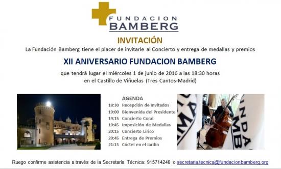 Con motivo del XII Aniversario de la Fundación procederemos a la entrega de Medallas de Oro y de Honor a aquellas personas que mas se han distingido en la colaboración con la Fundación Bamberg para la búsqueda de la excelencia de nuestro Sistema Sanitario. Igualmente se procederá a la entrega de premios consistentes en el Trofeo de la Fundación a aquellas Instituciones y Empresas que mas se han distinguido en el sentido citado.